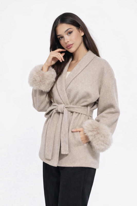 37% OFFDer Bianca-Mantel mit Pelzbesatz