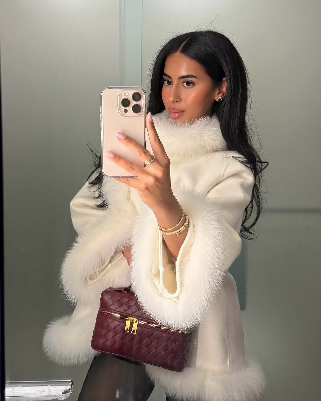 Details: Kragen, Saum und Bündchen aus weichem Kunstpelz für ein edles, luxuriöses Finish