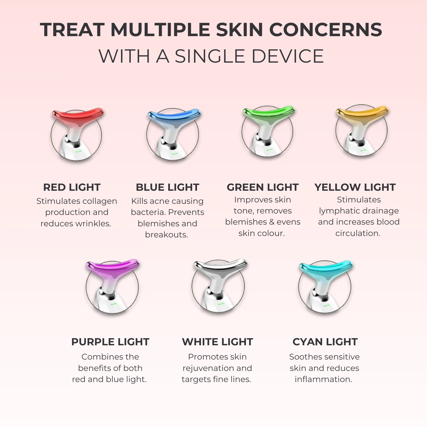 Choose from 7 different LED lights, which have been clinically proven to enhance skin texture, reduce wrinkles, combat acne and much more.